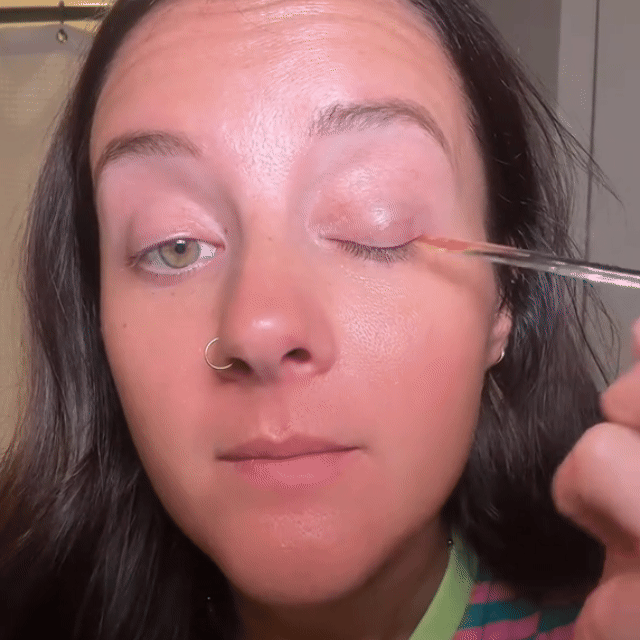 Aplica una fina línea sobre la base de las pestañas superiores, como si fuera un delineador. Deja secar 2–3 min.